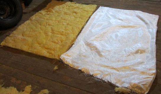 - Утеплювач Ізовер, він же мінеральна (базальтова) вата. Матеріал часто використовується для утеплення будинків, стін, дахів, вхідних дверей, віконних рам і іншого. Він дуже поширений, і в продажу знайти Ізовер не складе проблем. Товщина утеплювача складає 50 міліметрів, і він продається в стандартних рулонах. У мінеральної вати є серйозний недолік – вона сильно колеться, а це значить, що всі роботи з пошиття ковдри для автомобіля належить виконувати в гумових рукавичках.