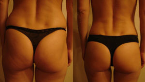 Фото до і після лікування ілюструє ефективність баночного масажу для усунення целюліту сідниць.