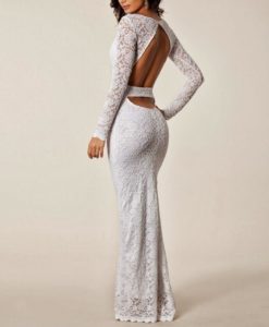 Білі сукні-футляри довжини максі чудово підходять для весілля, оскільки виглядають урочисто і святково. Особливо ефектно виглядають на весіллі моделі зі шлейфом: