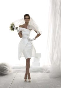 - мініатюрним дівчатам варто віддати перевагу коротким, вище коліна, суконь: вбрання такої довжини допоможуть нареченій виглядати вище і стрункіше;