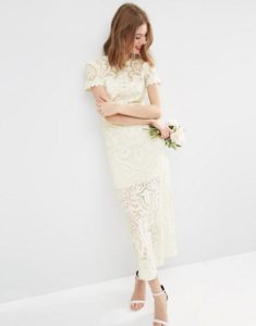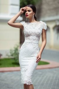 Прекрасно підійде для весілля біла модель міді: до коліна або на кілька сантиметрів нижче. Така довжина підкреслить стриманість і цнотливість нареченої, зробить образ елегантним і витонченим.