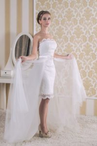Нареченим, які бажають виглядати шикарно, але в той же час цінують практичність і зручність, підійдуть моделі-трансформери з відстібними шлейфом: