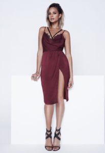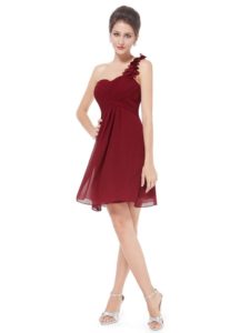 Струмує бордове плаття на одне плече: