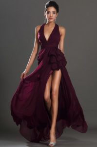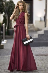 Вечірній бордова сукня в грецькому стилі – вільний крій і легкі, хвилясті тканини допоможуть приховати недоліки фігури, додадуть образу жіночності і шарму.
