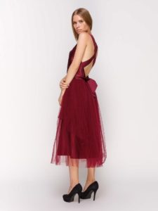 Бордове плаття на випускний середньої довжини