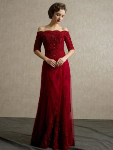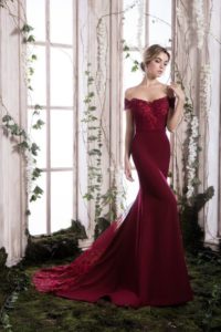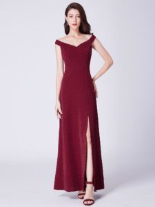 Бордове випускну сукню з відкритими плечима:
