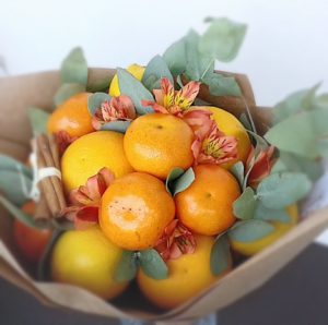 Важливо! Букети, зроблені з цілих фруктів, набагато довше зберігають свій первісний вигляд.