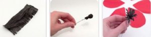 З чорного гофрованого листа вирізають невелику смугу. І на одній стороні роблять бахрому. Потім смугою обмотують кінець дроту і фіксують її ниткою. Піднімають бахрому наверх.