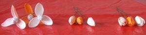 Через серцевину заготовок протягують дріт з бусиною. На кожну квітку потрібно по дві заготовки. Потім пелюстки піднімають вгору, формуючи бутон.
