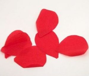 Для початку червону гофрований папір складають у кілька шарів. Малюють форму пелюстки і вирізують.
