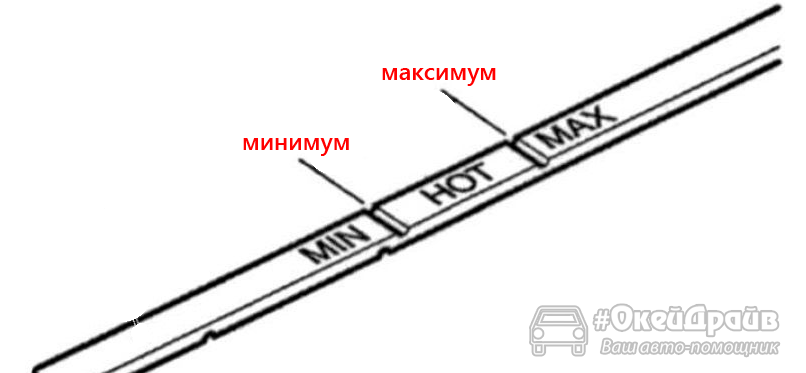 На кінчику кожного щупа є дві позначки. Одна з них (верхня) показує максимальну кількість масла, яке може бути залито в автомобільний двигун, а інша (нижня), говорить про мінімальному рівні масла, який допустимий при роботі даного мотора. Рівень масла повинен бути між цими двома позначками. Якщо кількість олії знаходиться на рівні близько нижньої позначки, потрібно терміново долити нове моторне масло, але спершу необхідно переконатися, що старе продовжує грамотно виконувати покладені на нього обов’язки. Варто зазначити, що в більшості сучасних автомобілів є індикатор рівня масла, який виводить на приладову панель інформацію про рівень масла в двигуні.