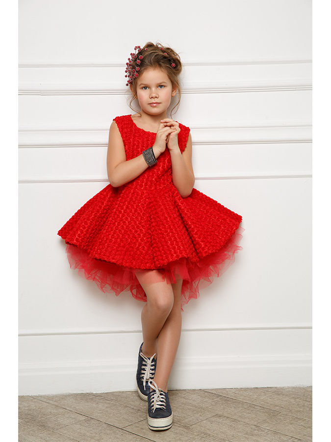 Червоне плаття виглядає красиво, яскраво і ефектно. Незалежно від крою, яскраві вироби з дитячої моди притягують до себе погляди і виглядають свіжо. З приводу урочистого випадку варто вибирати моделі з більш пишним подолом, прикрашені шовковими пояском на талії, ніжним бантом або квіточками збоку. Цікаво виглядають багатошарові варіанти, які в червоному кольорі ще красивіше. Яскраві та насичені тони можна скомбінувати в самі різні моделі, в яких відмінно виглядають пишні спідниці з шифону та мереживного верху. Вбрання з пояском з каміння або іншого декору додадуть образу елегантності і ніжності. Для урочистих заходів найкраще вибирайте насичені сукні в підлогу. В червоному кольорі вони будуть виглядати з особливим шиком. Великим плюсом у вбранні буде присутність декору у вигляді вишивки, аплікацій або страз. Дівчинка в такій сукні червоного кольору буде виглядати неймовірно чарівно.
