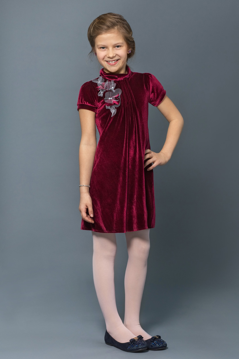 Оксамит – це матерія, яка виглядає запаморочливо і вишукано, але тільки в певних тонах. У їх числі – червоний, зелений, бордовий і чорний. Оксамитові сукні користуються великою популярністю у батьків маленької модниці. І причиною цього попиту є шик і вишуканість матеріалу. Червона тканина чудово переливається на світлі, виглядає дорого і досить мило. Особливо доречним є оксамит в сукні з А-силуетом або ліхтариком. Для дівчаток плаття з оксамиту потрібно вибирати не червоного кольору, а навпаки, темно-червоного або ніжно-рожевого відтінку. Вибір колірної гамми залежить від самого заходу, на який ви плануєте повести дитину. Варто виділити, що оксамит — це той матеріал, який абсолютно не потребує доповнення у вигляді декору. Єдиний елемент, який ви можете внести в образ, це оригінальні складки, бантик з оксамитової стрічки або мереживо по подолу сукні.