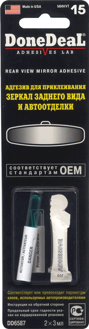 - DoneDeal, варіації DD6587 і DD6588. Мабуть, найдешевший і найпоширеніший варіант для кріплення дзеркала заднього виду до лобового скла. Ці набори відрізняються один від одного лише кількістю компонентів, DD6587 покупець отримує один набір активатора і адгезиву, а у варіанті DD6588 два таких набору. Кожен з флакончиків по 3 мл;