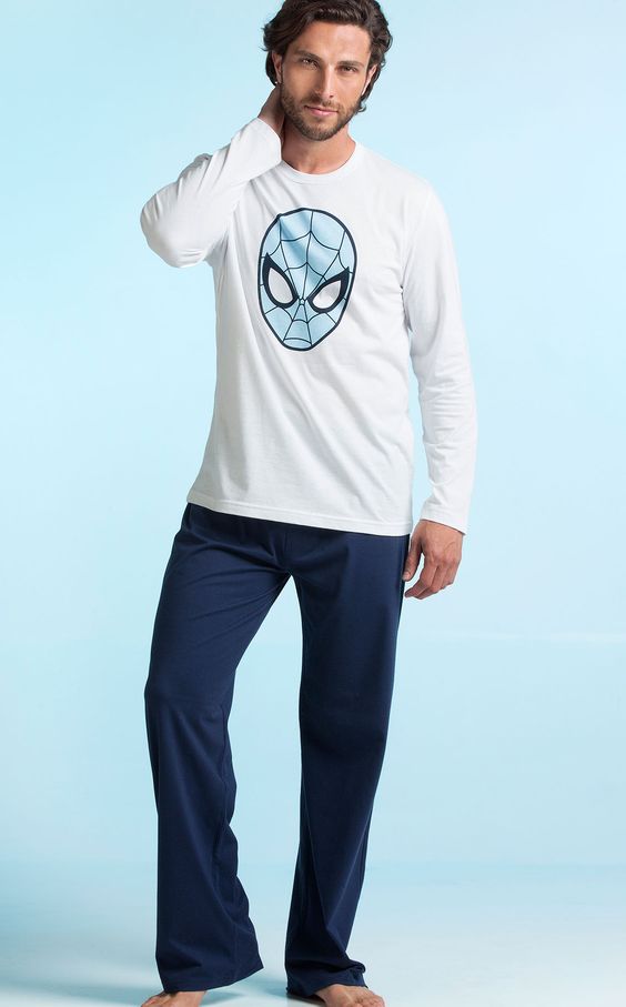 На сучасному ринку до звичайної класики додалися піжами для чоловіків з приколами. Якщо ви романтична натура або просто веселун за життя, придивіться до більш креативним моделям. Піжами для сильної статі у вигляді лісових тварин виглядають кумедно, а комплекти для дорослого дядька з веселими, мультяшними принтами викликають розчулення. Як же чудово виглядає чоловіча піжама-комбінезон з малюнком на північні мотиви. Якщо ви в таку ж модель одягнете свою другу половинку, то будьте впевнені, що веселе і комфортне проведення часу забезпечено. А уявіть собі, що ви щовечора надягаєте костюм Бетмана. Відчуваєте себе героєм? Хоча це всього лише ваша затишна піжама.