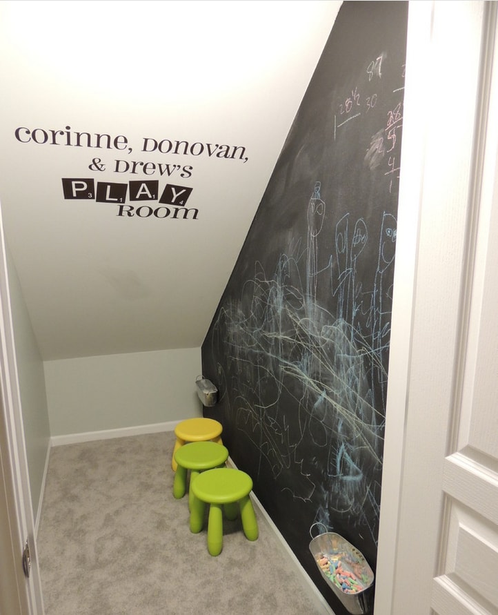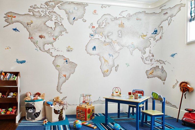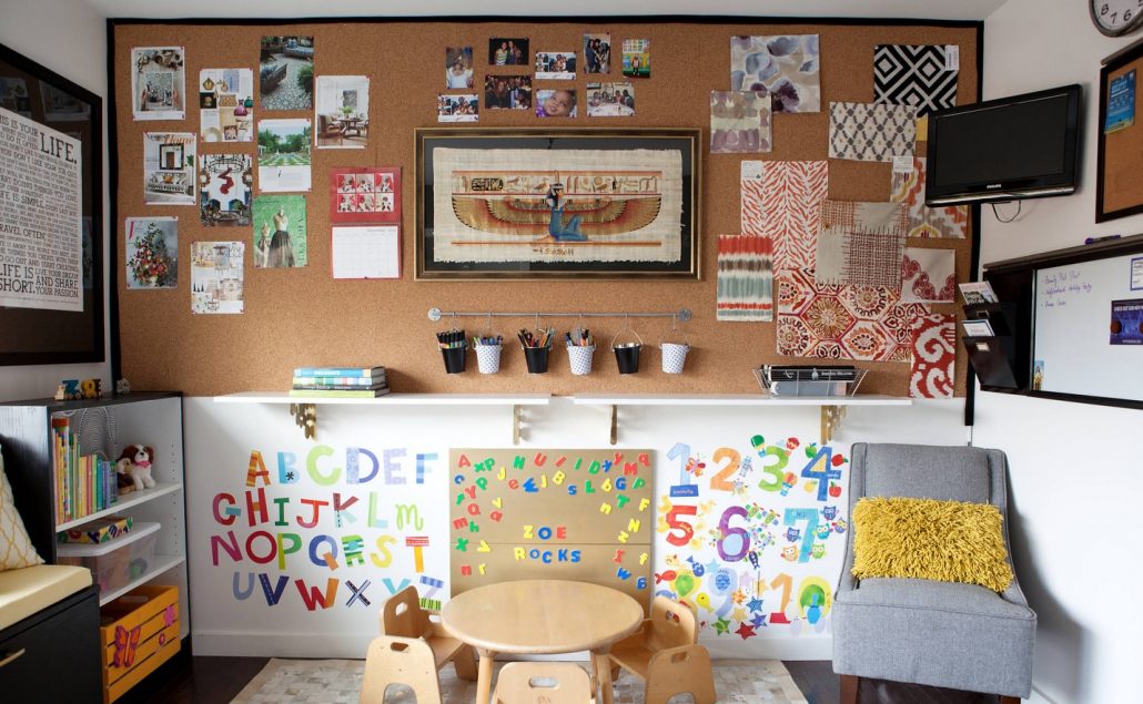Для того щоб дитина втілив своє бажання в життя і міг насолоджуватися малюванням на шпалерах, стіни ігрової кімнати слід покрити миючим матеріалом. Добре буде, якщо в кімнаті вийде розмістити грифельну дошку – можна пограти в школу і одночасно помалювати, пописати, повчити цифри і букви.