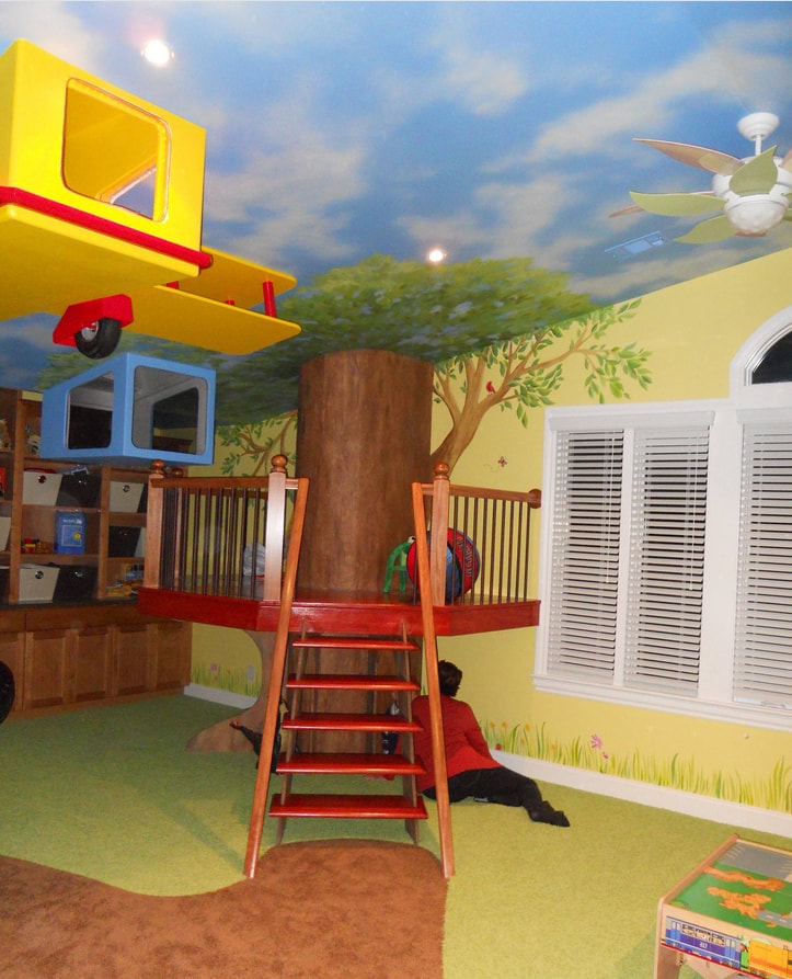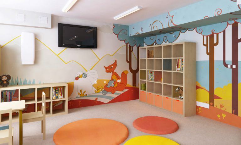 Облаштування ігрового простору для дитини починається з вивчення і розуміння його інтересів і уподобань. В інтер’єрі кімнати втілюються улюблені персонажі, епізоди з мультфільмів та казок. Але дітки відрізняються своїм непостоянствои, і сьогодні їм подобається Червона Шапочка, а вже завтра – Шрек. Тому, потрібно створити загальну картину дизайну – вибрати основні кольори підлоги, стелі, стін.