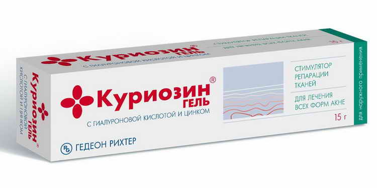 Гель Куріозін – розробка угорських фармацевтів з компанії Gedeon Richter, призначена для лікування акне середньої і легкої форми. Продається в тубах по 15 мл, в будь-яких аптеках без рецепта. До складу входять цинку гіалуронат (активна речовина), калію сорбат, натрію гідроксид, карбомер, вода для ін’єкцій. Продукт має протимікробну дію, що сприяє регенерації тканин і клітинного харчування.