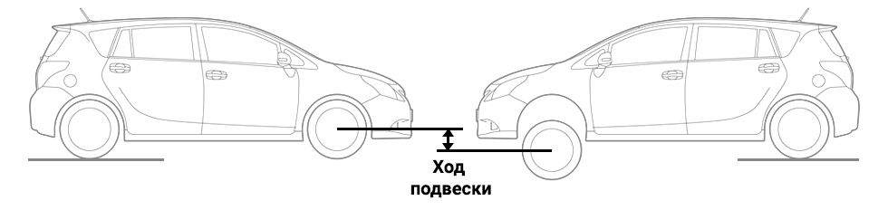 Зверніть увагу: Якщо вода потрапить у впускний тракт разом з повітрям, це може призвести до гідроударів, що виллється в необхідність капітального ремонту двигуна для відновлення його працездатності. - Хід підвіски. Під даним поняттям розглядається максимальна висота, яку може подолати колесо у вертикальному положенні від точки максимального стискання підвіски до повного розвантаження, практично під час відриву від поверхні. Даний параметр не має ключове вплив на геометричну прохідність автомобіля, і він рідко згадується при розгляді даного параметра.
