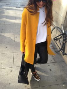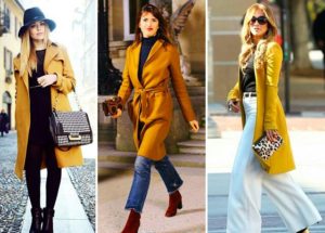 З чим носити пальто кольору гірчиці