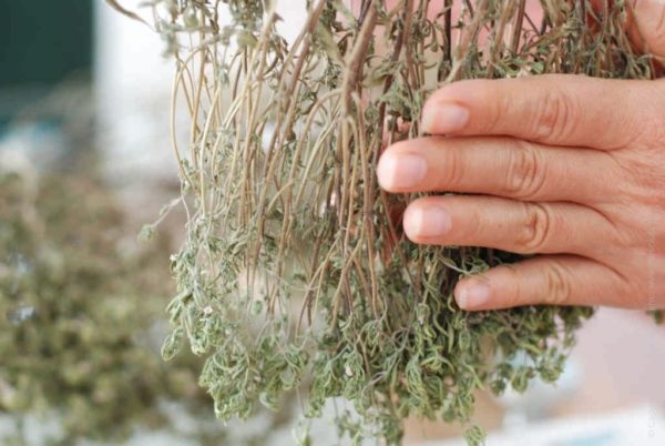- Можна залишити пучки трави висіти в приміщенні, якщо для цього є відповідні умови. І відламувати від них гілочки по мірі потреби для заварювання чаю або приготування лікувальних відварів.