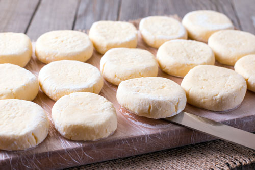 Ще простіше вирішити проблему зберігання свіжого сиру, якщо використовувати його як начинку для напівфабрикатів – млинців, вареників і т. д. Тримати їх у морозилці можна досить довго, але краще з’їсти протягом 3-4 тижнів, щоб не погіршився смак і аромат залишився.