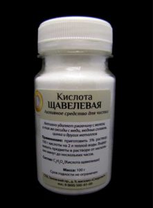Щавлеву кислоту використовують для усунення великого шару нальоту. При використанні такого засобу варто врахувати, що воно володіє високою едкостью. Тому слід дотримуватися обережності під час роботи з речовиною. Придбати кислоту можна в технічному магазині. Очищення проводиться в такій послідовності: