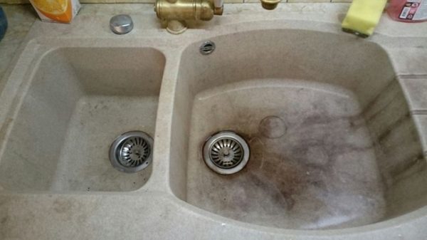 Як вже було сказано вище, перш ніж почистити раковину з штучного каменю звичним засобом, потрібно переконатися, що воно не містить їдких кислот і лугів. Наприклад, не варто користуватися рідинами і гелями для чищення духовок або усунення засмічень в трубах.