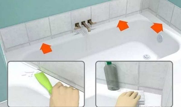 Матеріал наноситься по стику, наповнювати необхідно безпосередньо – в шов. Якщо проводиться монтаж плінтуса, обробка проходить з двох сторін Це робиться для того, щоб під планку не проникла рідина або мікроорганізми, тим самим виключаючи можливість появи грибка, цвілі.