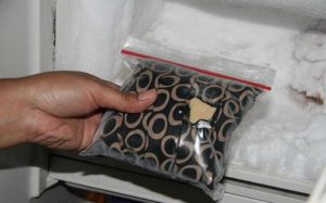 праці, поки він не всмоктався глибоко в тканину. Для цього в місці, де знаходиться слід, потрібно розтягнути одяг та пляму, а потім зняти його. Як варіант, одяг можна покласти в морозильник на два або три години – це найбільш легкий спосіб.