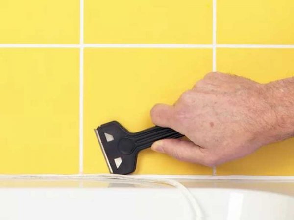 Пам’ятайте: не зіскобліть зайве, краще залиште трохи силіконового герметика. Якщо матеріал сильно зчепився з поверхнею, то не перестарайтеся – ви можете зіпсувати покриття кахлю.