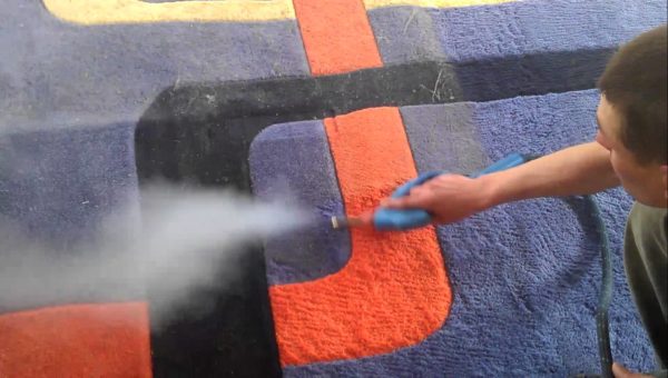 Чистка килима за допомогою пари (на фото) не тільки позбавляє від забруднень, але й дезінфікує поверхню