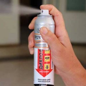 Коли усі обов’язкові роботи виконані, подивимося, як позбутися від бліх з будинку швидко і продуктивно. Найвідоміше і найефективніший засіб для швидкого знищення бліх з будинку є аерозоль від комах, а саме дихлофос, карбофос та інше. Його мінус — це токсичність і різкий запах. Не варто його застосовувати, якщо в будинку є тварини. Їх краще на час віддати родичам і потім проводити обробку приміщення. Якщо є акваріум, необхідно щільно закрити його кришкою і вимкнути компресор, включити його можна буде після повного провітрювання кімнати.