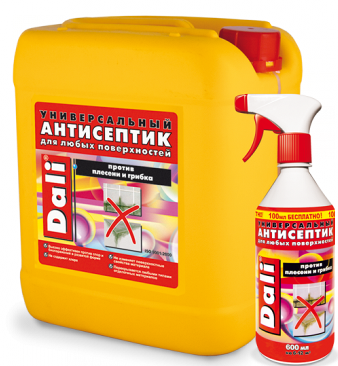 Дали (Dali) – визнаний усіма універсальний антисептик російської компанії «Рогнеда». Його ціна – 600 руб. за 5 л та 150 крб. за 0,6 л.