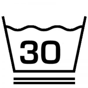 Делікатне прання – це 30-40 °C і величезний об’єм води. Тому зазвичай дана функція зображується у вигляді тазу з водою. На такому зображенні вказується температура. Додатково присутня одна горизонтальна лінія (може бути дві) нижче дна тазу, що позначає велику кількість води.
