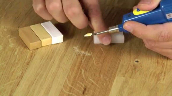 На фото — процес підбору воскового олівця потрібного кольору для усунення подряпин