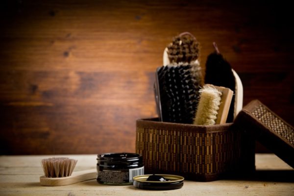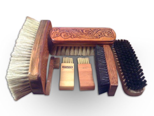 Головний інвентар, який вам знадобиться для догляду за шкіряними черевиками — це звичайна щітка. Ворс на ній може бути і штучним, але краще вибирати натуральні, так як він очищає і полірує взуття більш делікатно. Ворс може мати різну ступінь жорсткості, але для «ніжних» видів шкіри варто вибрати м’які щіточки.