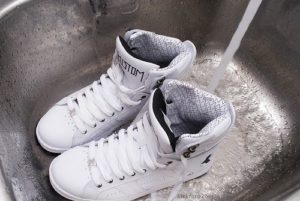 Сильні забруднення можна прибрати, розвівши у воді взуттєвої шампунь або очищувальну пінку.