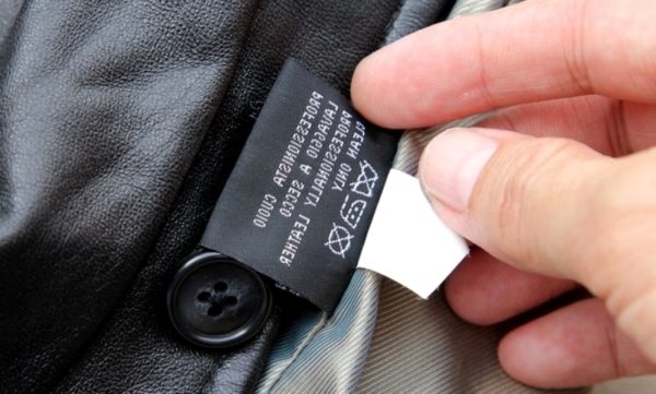 На ярличку вказані допустимі та заборонені способи по догляду за шкіряним одягом.