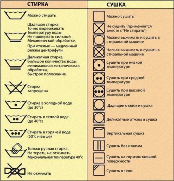 Способи прання залежать від матеріалу виробу.