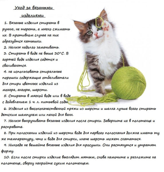 Щільно пов’язані міцні нитки збережуть форму навіть після перебування в пральній машині. Однак тонке плетиво вручну, як і кепки, берети, слід чистити обережно. Адже виріб може деформуватися, розтягнутися або навпаки – «сісти», а то і злиняти.