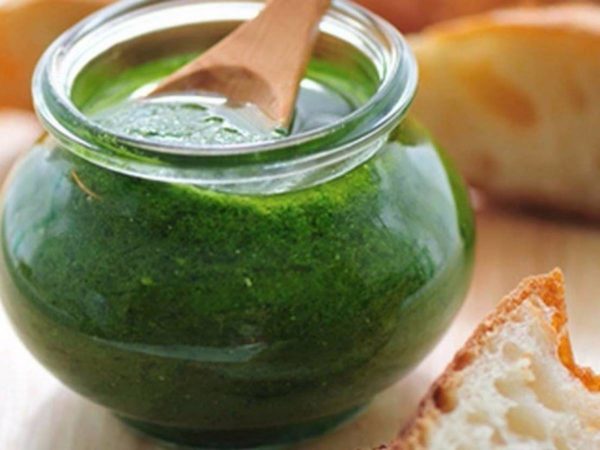 - коли кінза дійде до потрібної кондиції, отриману масу пересипають у скляні банки з обов’язковою наявністю щільних закривання кришок;