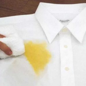 Сухий гірчичний порошок розвести невеликою кількістю води до отримання однорідної суміші, по густоті нагадує сметану. Нанести масу на пляму і витримати півгодини. Через час випрати виріб в теплій воді. Потрібно пам’ятати, що даний спосіб не підходить для білих речей.