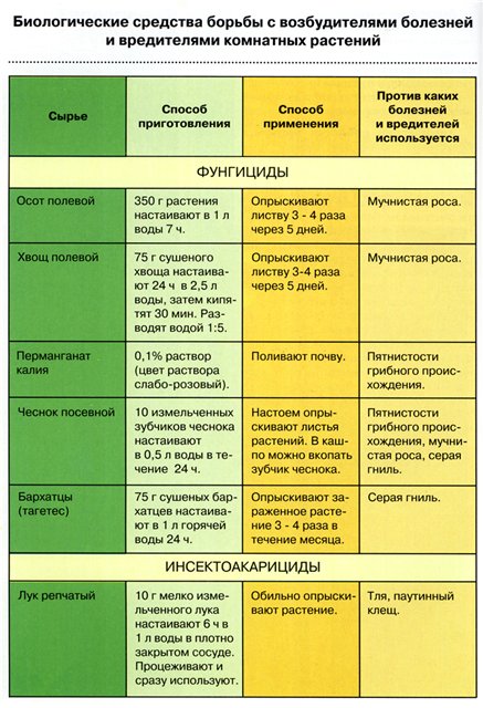 В допомогу – таблиця біологічних засобів від комах, і викликаних ними грибкових захворювань.