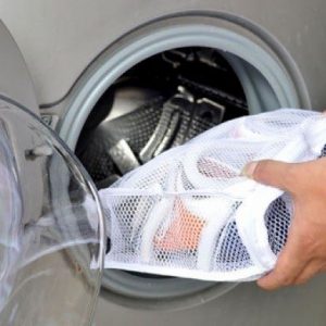 Кросівки перед закладкою в барабан автоматичної машини, поміщаємо в мішок, призначений для делікатного прання. Якщо такого мішка немає, то можна взяти стару наволочку. У цьому випадку необхідно переконатися, що наволочка не пофарбує кросівки під час прання.