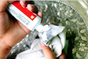 Замість порошку можна скористатися зубною пастою – вона діє не менш ефективно.