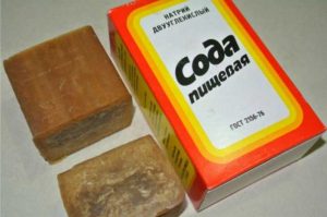Деякі домогосподарки рекомендують додавати в рівних пропорціях харчову і кальциновану соду, додаючи кілька крапель нашатирного спирту – все ретельно збовтують до повного розчинення мила і застосовують за призначенням.
