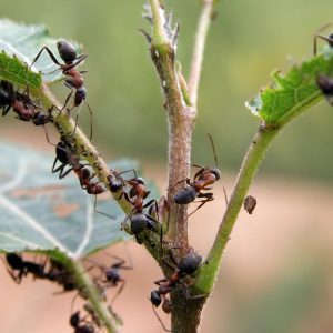 Бажання позбутися від мурашок на деревах може вважатися абсолютно виправданим тоді, коли біля будинку були висаджені молоді саджанці. Попелиця – головний шкідник всіх садових рослин. З допомогою мурах вона швидко поширюється по прибудинкової території, тому що їх залучають її солодкі виділення – падь.