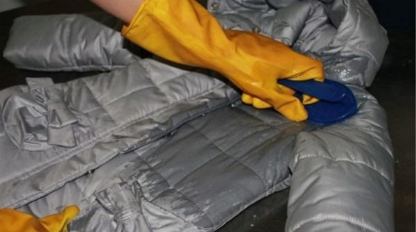 Щоб остаточно не зіпсувати одяг, потрібно перевірити дію бензину. Для цього кілька крапель речовини наносимо на малопомітну частина куртки (кишеню або внутрішня сторона рукава). Стежимо за реакцією матеріалу: якщо структура та/або колір пуховика не змінилися – можна використовувати.