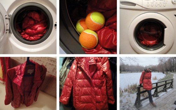Сушити пуховик близько електричних приладів не варто, він повинен висохнути в природних умовах, щоб пух не збився на жорсткий грудку.